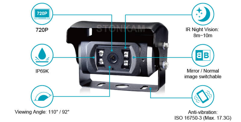 STONKAM® 720P waterproof backup cameras are easy to install and can work well with our MDVR to form high definition surveillance systems.