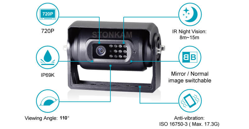 STONKAM® waterproof car backup cameras are easy to install and can work well with our MDVRs for good vehicle surveillance.